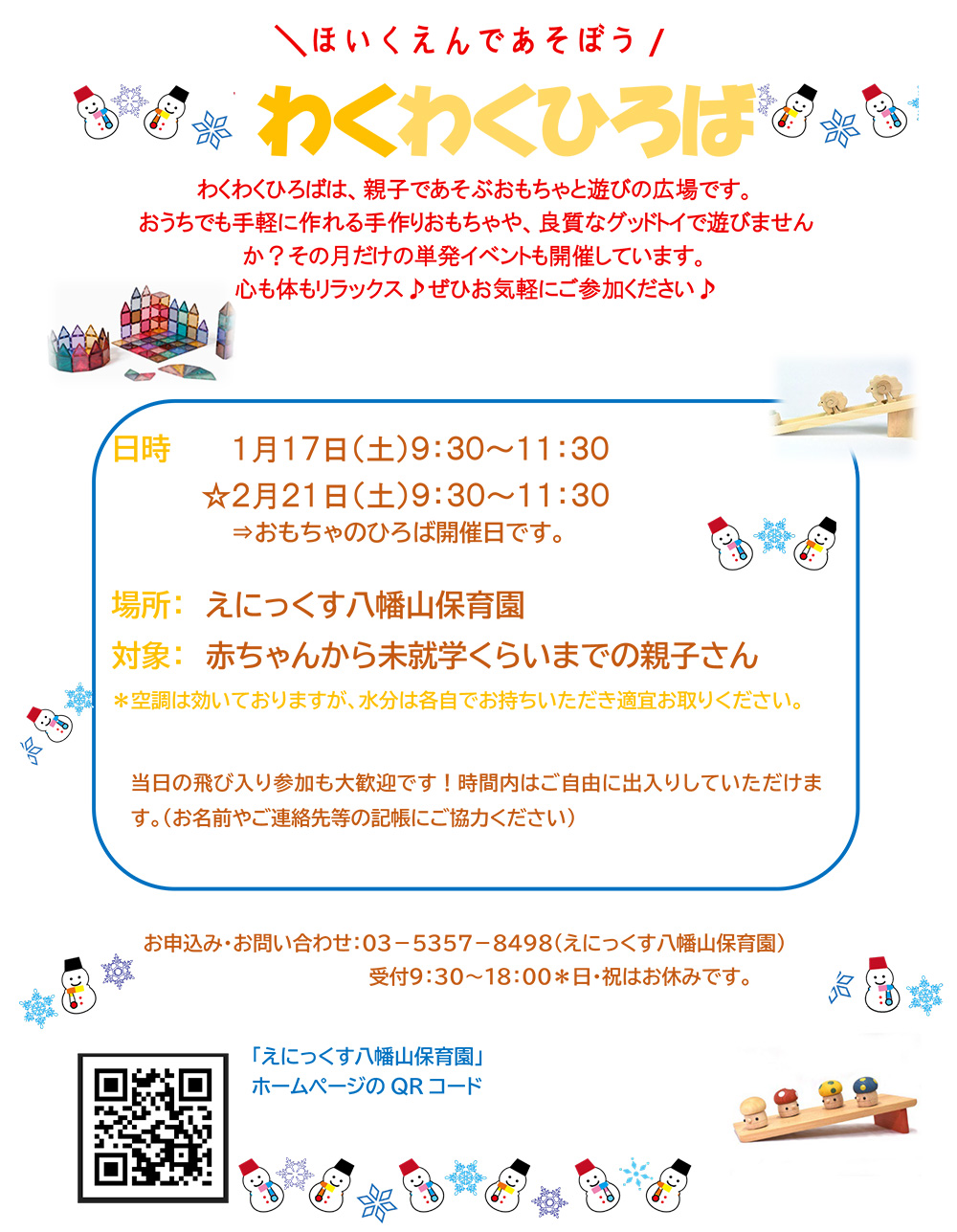 この度は、『えにっくす八幡山保育園』のホームページにおいでいただき、誠にありがとうございます。