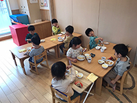給食では園児のアレルギー源を除去し、みんなで同じテーブルで食べたり、誤食を防ぐため、極力全員同じ給食を食べられる「なかよし給食」を実施しております。