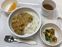 野菜などの食材は年間を通して大人が食べるよりも柔らかく調理しますが、4月は柔らかいもの。年度の後半はよく噛めるもの、など咀嚼の発育に合わせて提供しています。